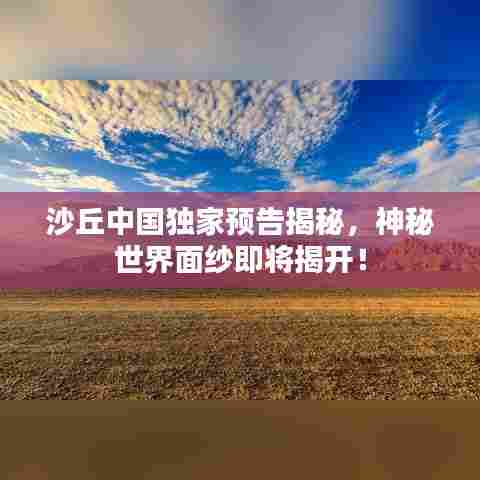 在中国独家预告中,观众可以一睹这部科幻大片的震撼场景,预告片以壮丽的沙丘为背景,展现了主人公勇敢面对恶劣环境与未知生物的场面,预告片还透露了丰富的角色关系与复杂的剧情发展,令人对这部影片充满期待,预告片中的特效画面与音效设计也堪称一流,为观众带来了一场视觉与听觉的盛宴。