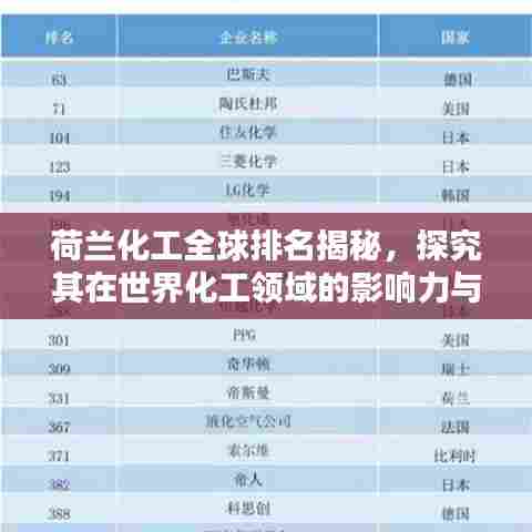 荷兰,这个位于欧洲大陆西北部的国家,以其卓越的创新能力、先进的科技实力和丰富的实践经验,在全球化工领域占据重要地位,本文将深入探讨荷兰化工行业的世界排名及其在全球化工领域的影响力。