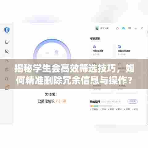 随着信息技术的快速发展,学生会作为校园内重要的组织之一,越来越多地采用数字化手段进行工作,专题研究作为学生会工作中的重要环节,不可避免地会产生大量信息数据,如何有效删除不必要的信息与操作,成为学生会工作中需要关注的一个重要问题,本文将探讨专题学生会如何删除不必要的信息与操作,提高工作效率和信息安全。