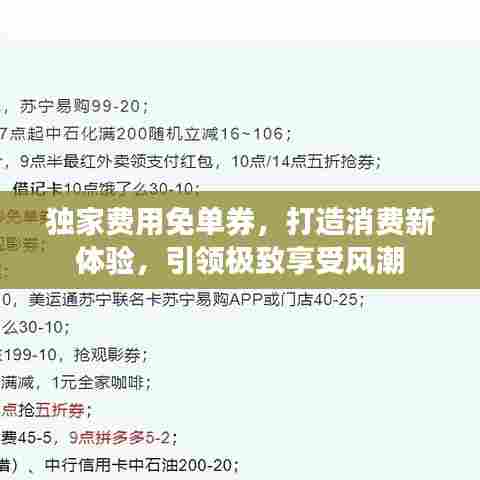 随着市场竞争的日益激烈,各大商家为了吸引消费者,纷纷推出各式各样的促销手段。“独家费用免单券”作为一种新型的营销工具,正逐渐成为各大商家打造极致消费体验的新利器,本文将从多个角度探讨独家费用免单券的概念、作用以及为消费者带来的实际利益。