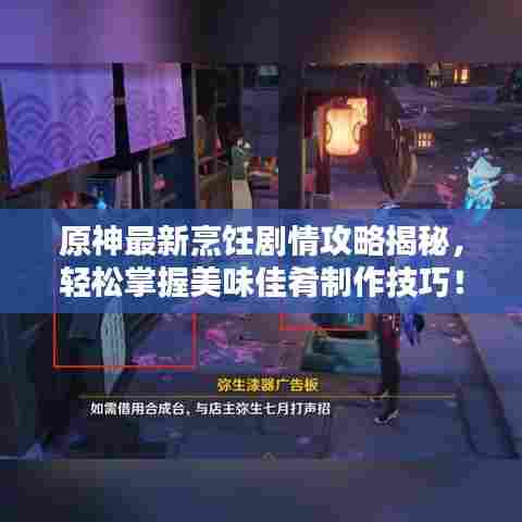 随着游戏原神(Genshin Impact)的更新,新的剧情和任务不断涌现,为玩家们带来了更多的探险乐趣,近期更新的做饭剧情更是为游戏增添了独特的魅力,本攻略将为大家详细介绍最新的做饭剧情攻略,帮助大家顺利完成任务,获取丰厚奖励。