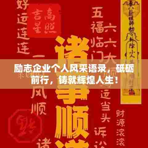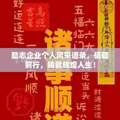 每一个企业员工的个人风采,都是一部励志的史诗,在这波澜壮阔的舞台上,我们不仅要追求个人的梦想与成功,更要为企业的发展贡献自己的力量,让我们一起铭记这些励志语录,展现自己的风采,共同创造更加辉煌的未来。